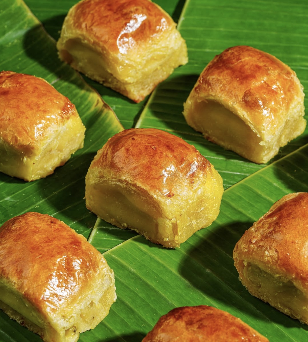 Varian rasa yang disediakan cukup banyak, seperti cokelat, keju, durian, dan kombinasi lainnya. Meski kedengarannya sudah kuno, tetapi pisang bolen satu ini masih menjadi kesukaan banyak orang tanpa pandang usia. Jadi, sangat cocok untuk dijadikan oleh-oleh kekinian! Perkiraan harga mulai dari sekitar Rp68.000 hingga Rp115.000 untuk isi 6-8 pcs ukuran regular.
