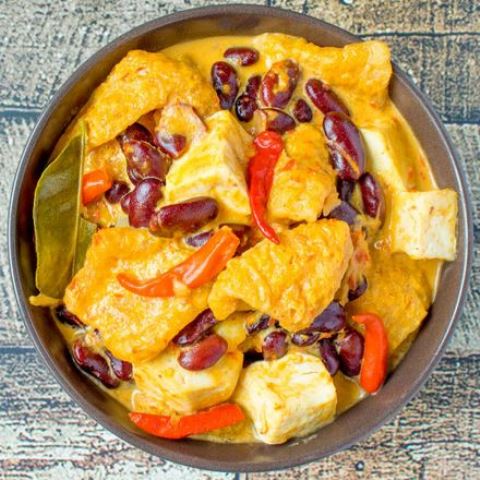 2. Masukkan santan dan kacang merah, masak hingga kacang empuk dan bumbu meresap