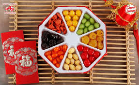 Manisan satu ini umumnya terbuat dari berbagai jenis buah-buahan dan biji-bijian. Isian yang tersaji di dalam kotak umumnya memiliki makna khusus, seperti keberuntungan, panjang umur, kemakmuran, dan harapan. Angka delapan dipercaya membawa keberuntungan.