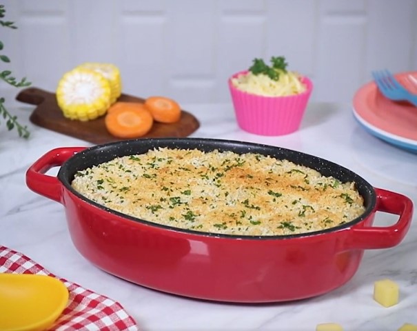 8. Panggang 200ºC hingga berubah warna. Angkat. Sajikan