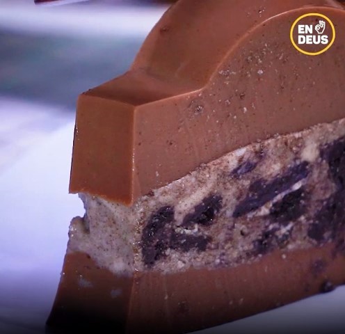 (Jika dibelah, oreo akan menjadi bahan yang membuatnya terasa renyah. Foto: Dok. Endeus TV)