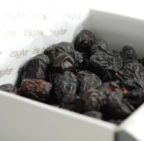 Tekstur daging tebal dengan sensasi caramel yang lembut di mulut. Buah ini merupakan impor dan dijamin keasliannya sebagai kurma Ajwa autentik dari Timur Tengah.