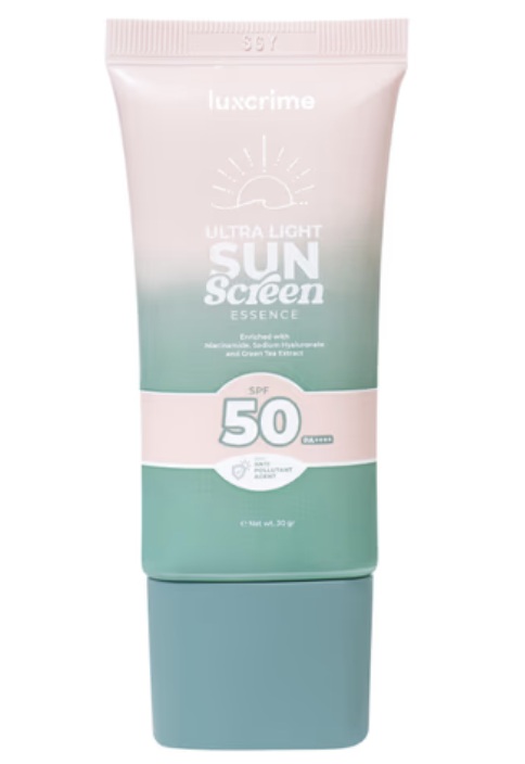 Luxcrime ultra light sunscreen essence SPF 50 PA++++ adalah esensi tabir surya ringan yang melindungi kulit dari sinar matahari secara cepat dan menghidrasi, sekaligus mencerahkan warna kulit secara bertahap.