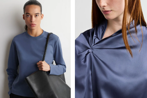 (COS Clean Cut T-Shirt dan Max Mara Silk Wrap Shirt. Foto: Dok. Istimewa)