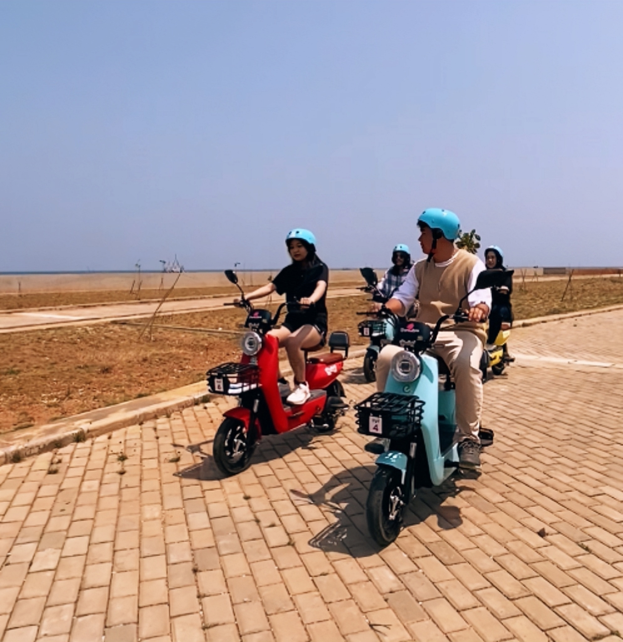 Kegiatan ini merupakan rekreasi baru dan jadi favorit para keluarga yang liburan di Tanjung Lesung. Sebab boncengan bersama anak naik sepeda listrik sambil menikmati pemandangan pantai memberikan sensasi tersendiri.