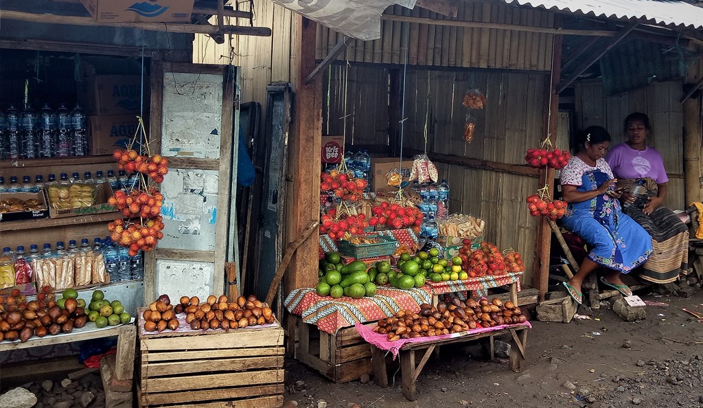Pondok sederhana berbahan bambu dan beratap seng milik pedagang, juga berisi hasil kebun penduduk setempat. Seperti rambutan, salak dan alpukat. Bisa juga bersantap makanan dengan menu lokal atau sambil menyeruput secangkir kopi di warung makan.