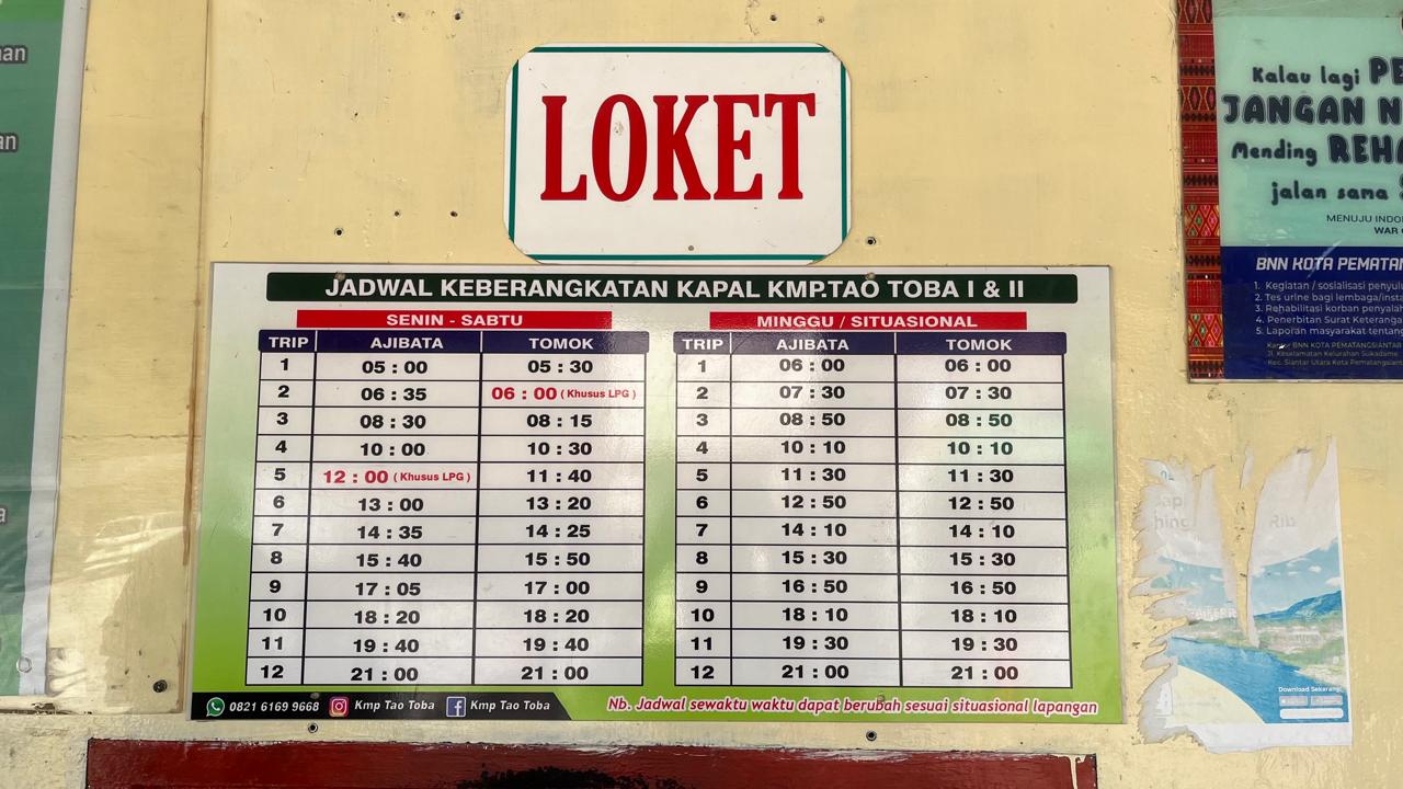 Harga tiket kapal feri untuk menyeberang ke Pulau Samosir dari Pelabuhan Ajibata. Foto: Medcom.id/Fatha Annisa