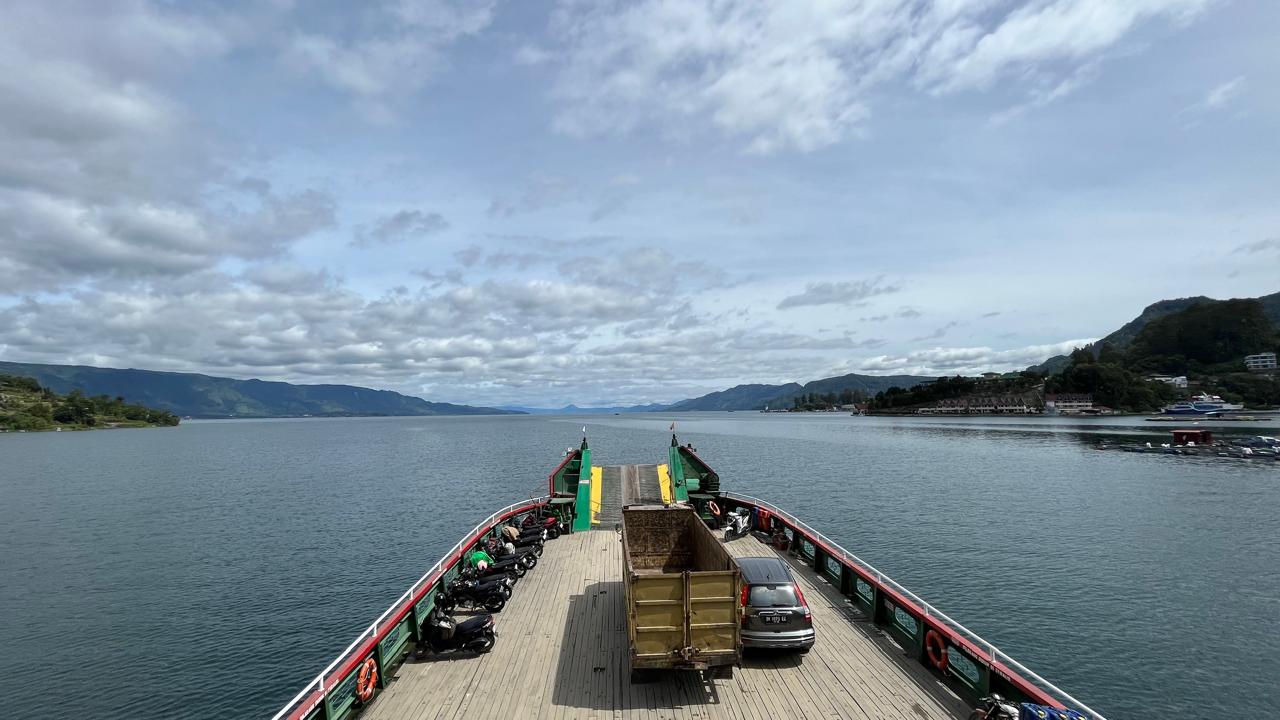Perjalanan menuju Pulau Samosir dari Pelabuhan Ajibata memakan waktu satu jam. Supaya tidak bosan, duduklah di area depan dek kapal. Dari sana, kamu bisa menikmati pemandangan danau Toba yang begitu megah, serta Pulau Samosir yang tampak kehijauan dari kejauhan.