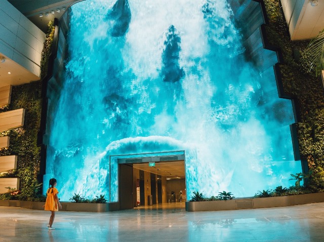 (Mengalir ke alam yang menawan dengan turunnya air terjun digital yang megah di aula keberangkatan T2. Foto: Dok. Istimewa)