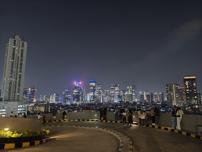 Salah satu spot bengong dengan pemandangan city scape yaitu ada di Rooftop Kuningan City Mall. Selain gratis, tempat ini menawarkan pemandangan city light Kota Jakarta.