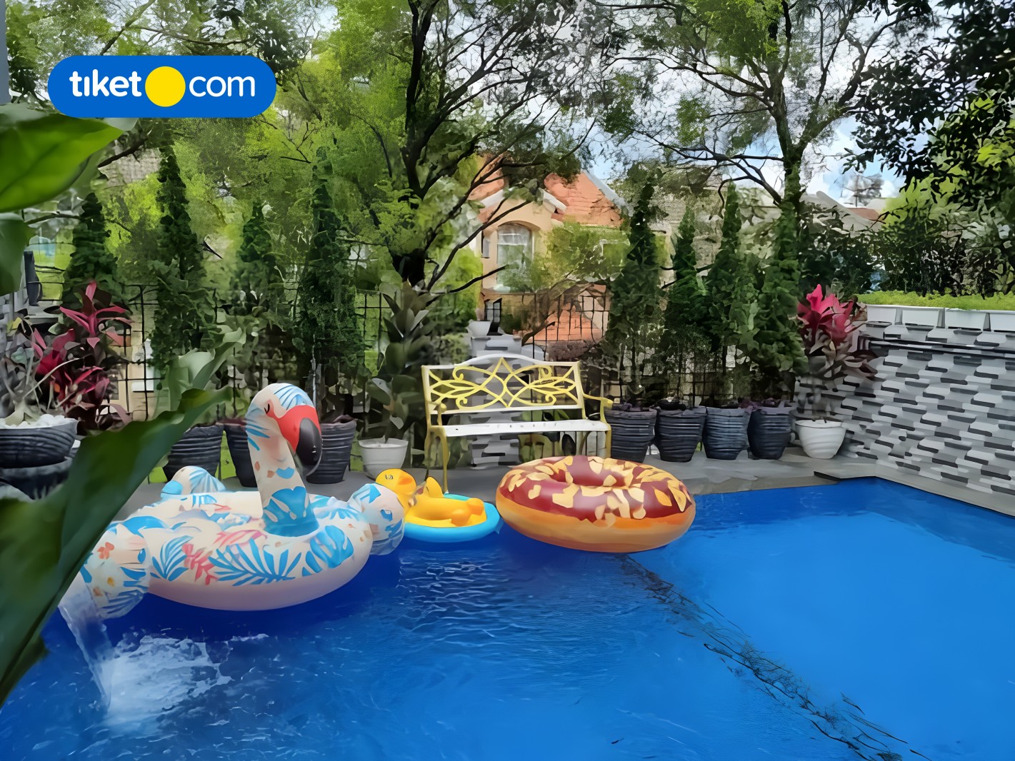 Vila berkapasitas hingga 12 orang dengan lima kamar tidur, kolam renang pribadi, dan area outdoor luas. Ideal untuk rombongan besar atau keluarga. Tarif sewa di vila ini dibanderol mulai dari Rp2,1 juta-an per malam.