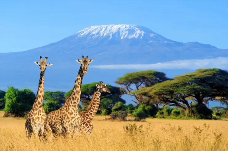 Salah satu pemandangan Padang Safana dengan latar Gunung Kilimanjaro. (Foto: Traveloka)