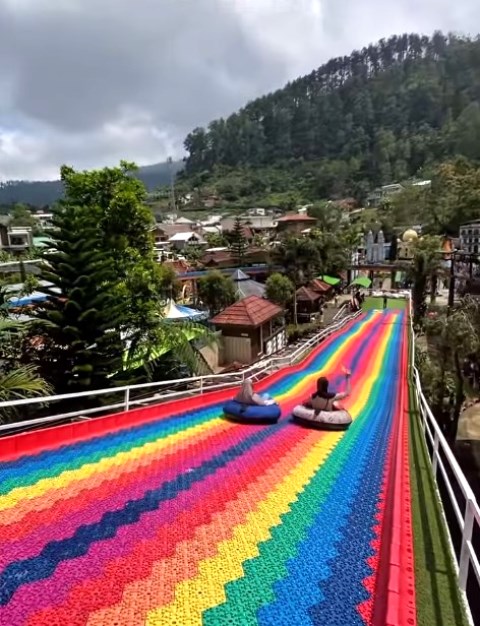 Pilihan sempurna untuk liburan keluarga, dengan udara pegunungan yang sejuk dan pemandangan hutan pinus yang hijau dan asri. Kamu bisa datang bersama anak-anak atau pasangan untuk mencoba semua wahana ini, sambil menikmati suasana yang tenang dan jauh dari polusi kota. Harga tiket: Rp20 ribu.