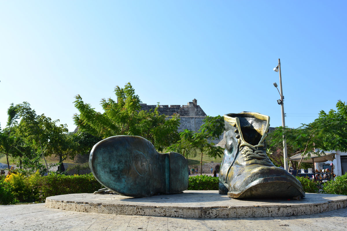 Sepatu dipajang di depan Castillo San Felipe de Barajas yang indah, menjadikannya tempat yang sempurna untuk spot berfoto. Pengunjung bisa berfoto di sebelah sepatu, atau naik ke dalam.