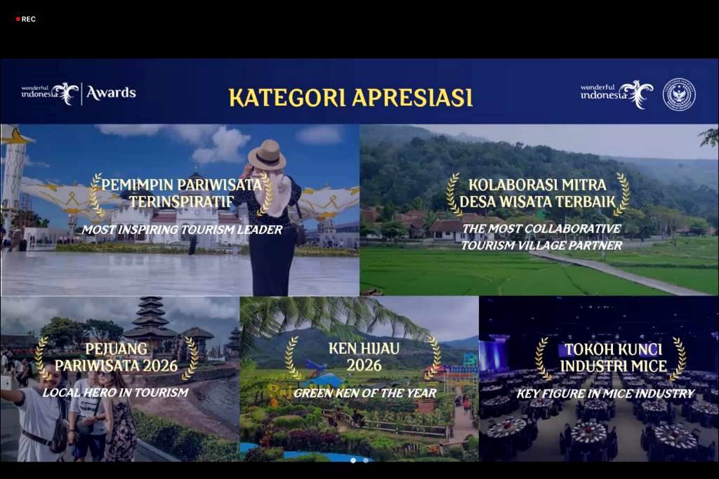 Menpar Widiyanti dalam sambutannya di “Virtual Kick-off Wonderful Indonesia Awards 2026”, Selasa (14/4/2026), mengatakan bahwa ajang yang memasuki tahun kedua ini menjadi bentuk penghargaan tertinggi bagi pelaku, pengelola, dan pemangku kepentingan yang berkontribusi nyata dalam transformasi pariwisata Indonesia.