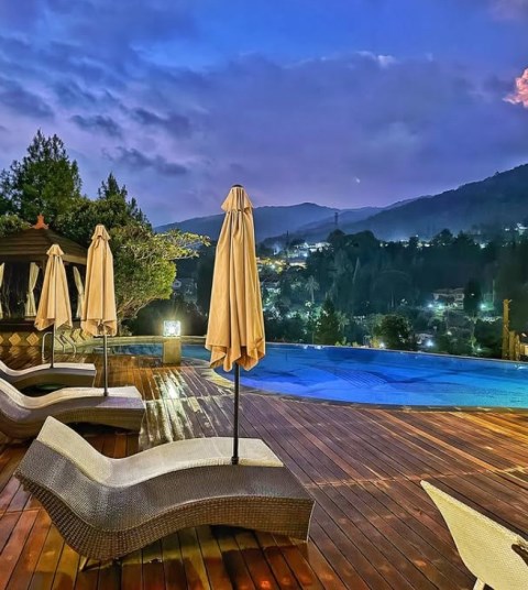 Spot foto yang Instagramable di sini adalah infinity pool. Tak hanya dijadikan latar berfoto saja, kamu juga bisa berenang di sana sambil menikmati pemandangan hutan hijau yang sangat eksotis. Terutama ketika kabut mulai turun, suasana akan semakin terasa segar.