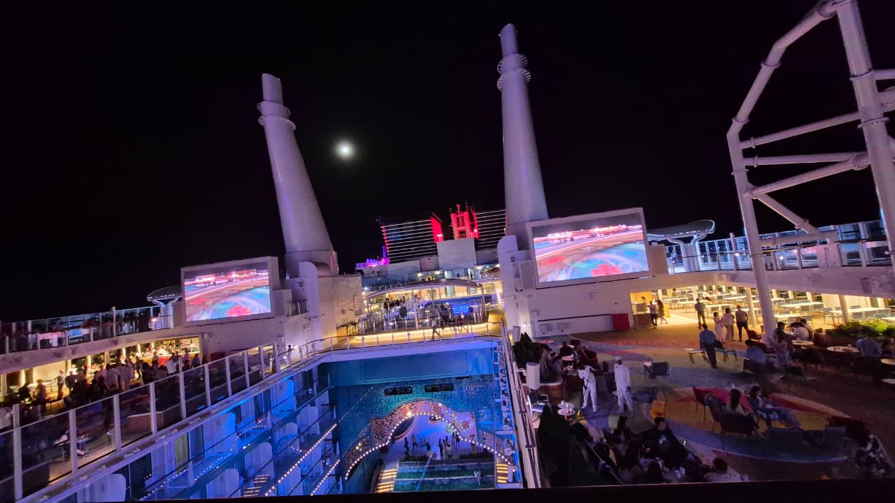 Suasana dek lantai 18 Kapal Disney Adbenture saat menunggu pertunjukan pesta kembang api. Foto: Medcom/Citra Larasati