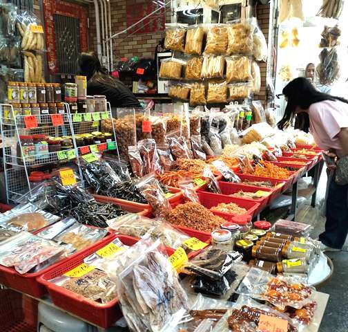 (Gang-gang sempit di Tai O, menawarkan hasil bumi sekitar. Foto: Dok. Medcom.id/Yatin Suleha)