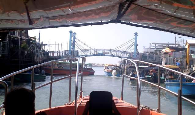 Dari tengah jembatan ini jadi pemandangan terbaik berupa rumah panggung Tai O yang berjajar di tepi sungai dan rumah susun. Ini adalah tempat yang ciamik untuk mengambil foto. Jadi titik awal yang baik untuk menjelajahi desa nelayan Tai O.