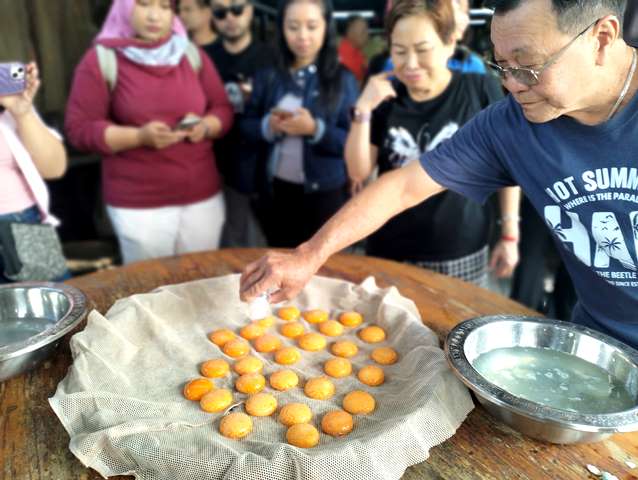 Joanna, tour guide kami yang lainnya juga memberi tips, "Egg yolk (telur asin) dikukus terlebih dahulu sebelum diolah lagi dalam masakan. Bisa dicampur dengan bahan utama lain." Ia bilang, karena kuning telur ini sudah terasa asin, sebaiknya memasak tak menggunakan garam berlebih, agar masakan tak keasinan.