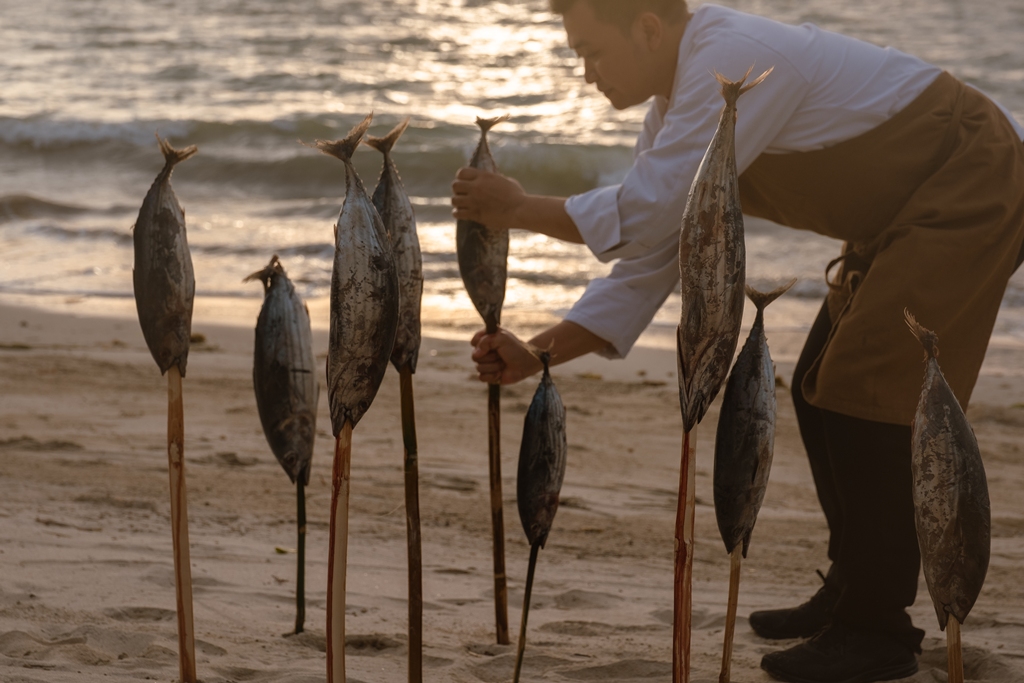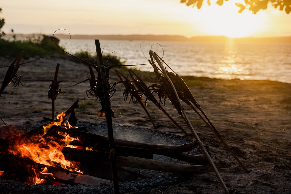 Saat matahari mulai turun, lobster dibakar di tepi pantai menggunakan teknik api unggun tradisional. Asap kayu menyapa udara laut senja, menghadirkan sensasi rasa yang elegan.