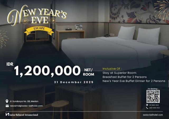 Jakarta: Menyambut pergantian tahun, Swiss-Belinn Medan menghadirkan dua pilihan spesial bagi tamu yang ingin merayakan malam tahun baru dengan nyaman dan berkesan.