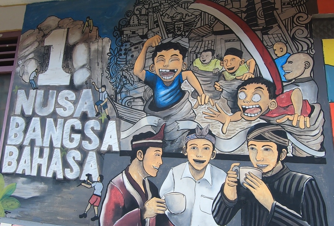 Tak hanya warna, permainan tema dari setiap mural ini juga menjadi daya tarik wisatawan untuk bisa memamerkan swafoto mereka di sini. (Foto: A. Firdaus)