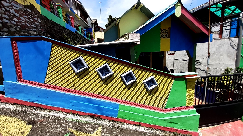 Saat kamu melangkah ke area kampung tersebut, kamu akan disuguhi warna-warni. Bukan hanya di tembok rumah, tetapi juga di jalannya. Tak hanya itu, ada beberapa mural dicat di tembok dengan memiliki pesan mendalam.