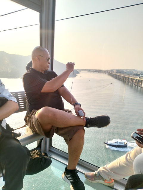 Tentu saja kami tak melewatkan menaiki Cable Car, Ngong Ping 360 Cable Car di Lantau Island. Menaiki Crystal+ Cabin yang baru saja diluncurkan menawarkan visibilitas lebih dari 80 persen dan melihat 360 pemandangan alam yang dimiliki oleh Hong Kong. Bisa saya utarakan rasanya 'gila banget!'