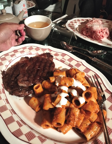 Pukul 6 sore bersiap makan malam. Saya masih mengingat benar, makan bersama pertama kali di Pasteako, Hollywood Road, di Aberdeen Street, Central. Sajian pasta mezzi rigatoni dengan saus romesco, dan rib eye yang well done, benar-benar menyajikan kenikmatan diluar dugaan. Konsep sedang makan menu kita kemudian disajikan lagi jenis pasta dengan saus dan rasa yang berbeda-beda, jujur saja bikin hati senang.