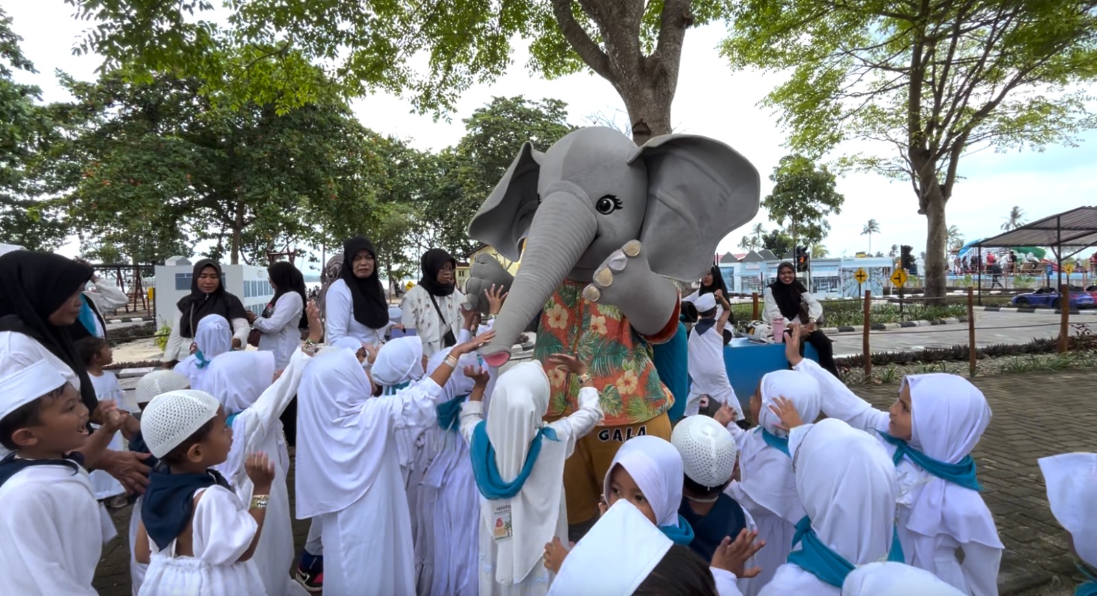 Selain itu, suasana liburan juga diramaikan dengan atraksi funny jump scare, kehadiran exotic pet, serta music corner yang menghadirkan hiburan musik ringan bagi wisatawan yang ingin bersantai di area pantai dan wahana.