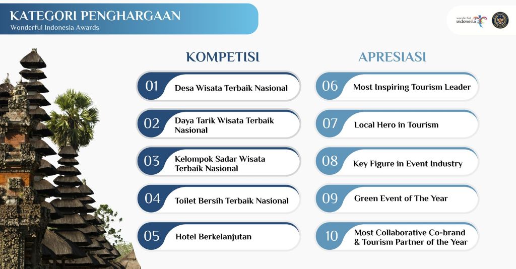 Adapun 10 kategori penghargaan Wonderful Indonesia Awards 2025 meliputi: