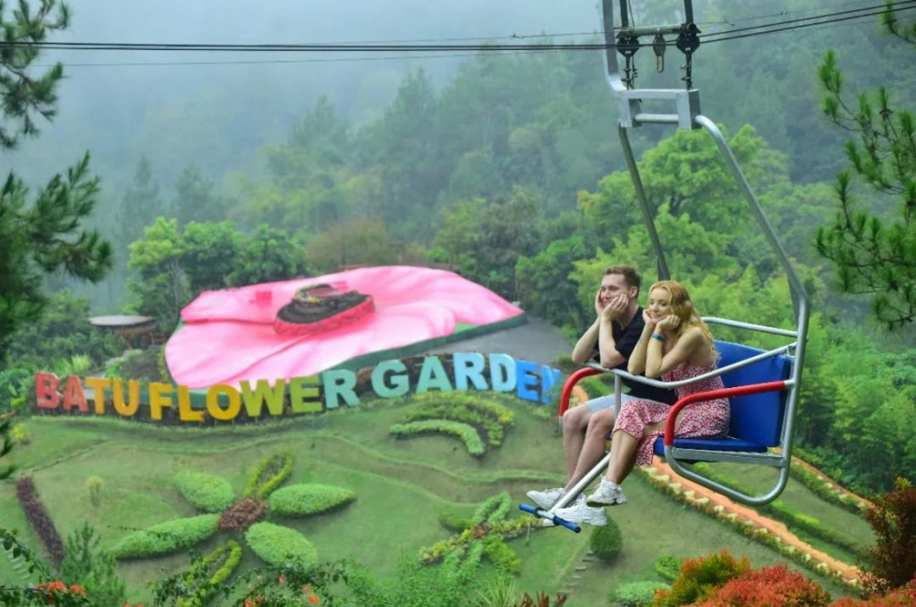 Rekomendasi tempat wisata yang pertama adalah Batu Flower Garden. Para pecinta bunga yang berkunjung ke Malang jangan lupa datang ke tempat ini. Lokasinya berada di kawasan lereng Gunung Panderman di atas ketinggian 1.000 sampai 1.200 mdpl, tepatnya di Oro-Oro Ombo, Kecamatan Batu, Kota Batu.Di sini, wisatawan dimanjakan dengan hamparan bunga yang cantik dan sangat instagramable. Anda bisa berswafoto sepuasnya untuk kemudian diunggah ke media sosial. Tak hanya itu, terdapat pula kawasan berkemah bagi wisatawan yang ingin merasakan bermalam ini kota Batu.