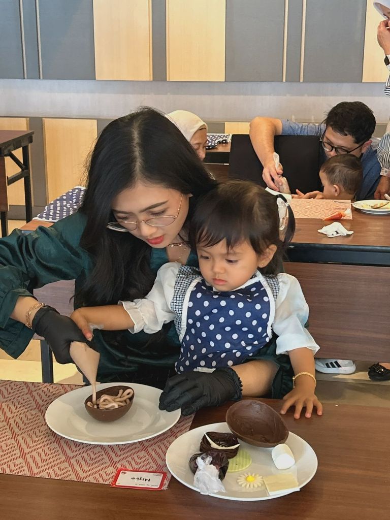 Puncak acara ada pada program Little Chef yang bekerja sama dengan komunitas kreatif. Di sesi ini, anak-anak diajak langsung berkreasi menghias Bunny Pizza Pie bersama pastry chef hotel.