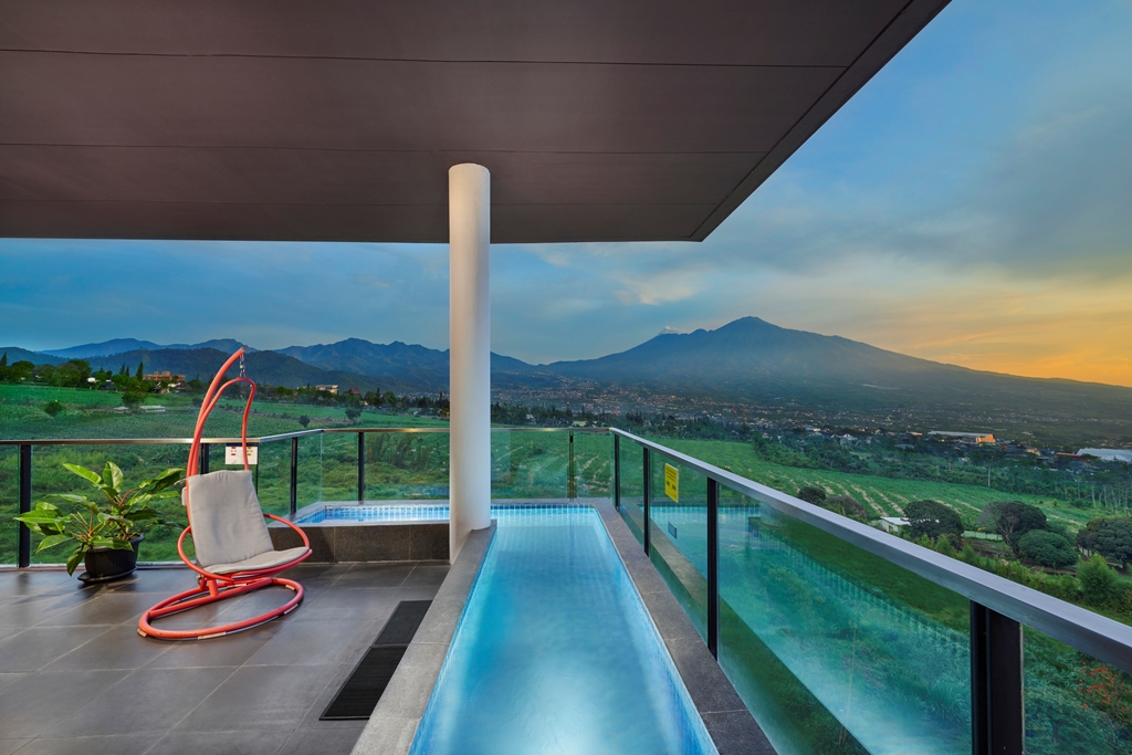Dengan bermalam di kamar tipe suite, kamu bisa menikmati mini jacuzzi di balkon kamar. Dok. Golden Tulip Holland Resort Batu