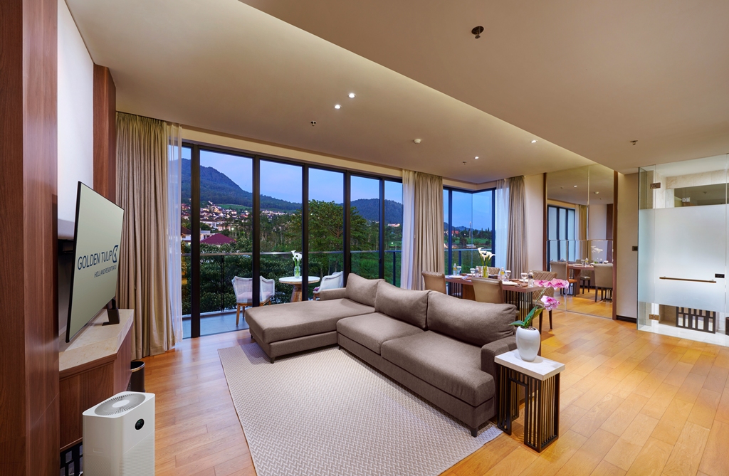Living room yang megah, mengajak keluarga jadi pilihan yang cocok. Dok. Golden Tulip Holland Resort Batu