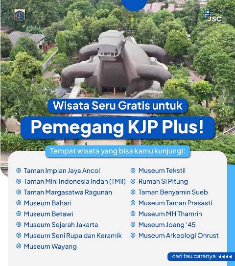 Selain itu, bagi pemegang Kartu Jakarta Pintar (KJP) Plus, kebahagiaan Lebaran juga dapat dirasakan melalui akses masuk gratis ke sejumlah destinasi wisata edukatif. Transportasi menuju lokasi juga dapat dinikmati secara gratis menggunakan KJP Plus.