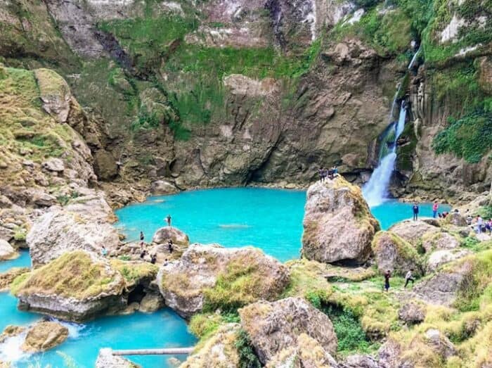 Di sekitar kolam terdapat tebing kapur yang menjulang tinggi menambah pesona kecantikan air terjun ini. Biasanya pengunjung memanfaatkan tebing tinggi tersebut untuk lompat ke dalam kolam.