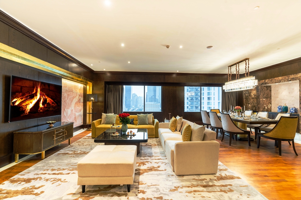 Casablanca Suite juga menyediakan fasilitas premium seperti smart TV 76 inci, Wi-Fi berkecepatan tinggi, hingga area kerja khusus yang menunjang produktivitas. Menariknya, suite ini memiliki akses pintu terpisah bagi housekeeping, sehingga tamu dapat menerima layanan kebersihan dan room service tanpa mengganggu privasi.