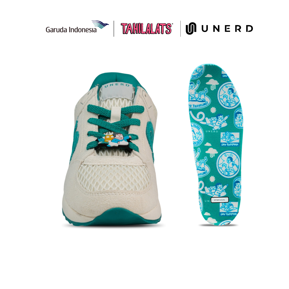 Dari sisi desain, koleksi ini menghadirkan dua artikel eksklusif dengan siluet sport style khas UNERD. Elemen visual Tahilalats yang playful dipadukan dengan identitas Garuda Indonesia yang ikonik. Detailnya terasa di berbagai sentuhan, colourway khas, jibbitz karakter, hangtag bergaya boarding pass, insole ilustratif, hingga box edisi khusus yang membuat pengalaman unboxing terasa collectible.