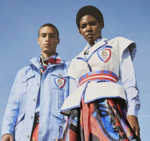 Desainer Stella Jean menciptakan seragam Tim Haiti yang menampilkan karya seni pelukis Haiti Philippe Dodard untuk upacara pembukaan Olimpiade Paris 2024. Jean mendeskripsikan tampilan tersebut sebagai “seragam untuk kelahiran kembali republik kulit hitam pertama,” yang terdiri dari rok penuh bermotif cerah untuk wanita, celana bermotif sama untuk pria.Dua atasan pada seragam pun terinspirasi dari budaya dan tradisi lokal. Pertama, kemeja chambray yang terbuat dari “katun biru” Haiti, dan jaket lapangan yang terinspirasi dari kemeja Guayabera.