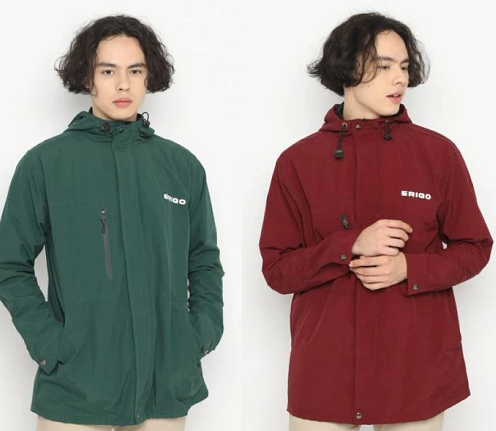 Model jaket Parka Erigo didesain untuk kenyamanan dan efektivitas saat melakukan kegiatan outdoor. Parka Erigo memiliki beberapa fitur menarik untuk kegiatan outdoor yang lebih praktis.Beberapa fitur tersebut antara lain banyaknya resleting di kanan, kiri, dan depan dada jaket untuk meletakkan barang seperti handphone. Parka Erigo juga memiliki tudung kepala tersembunyi di balik resleting kerah dan terbuat dari bahan taffeta dengan warna yang menarik. Harga Rp185 ribuan.