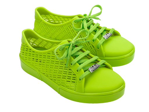 Bagi kamu yang menyukasi desain klasik, model Mellisa yang satu ini bisa jadi pilihan. Modelnya unik, dengan desain baru tanpa kehilangan siluet klasiknya. Melissa Possession menjadi sneaker favorit dengan penutup gesper dan desain unik, tali dan ujung bulat bergaya sepatu jelly. Warna transparannya semakin mengingatkan kita pada model zaman dulu. Istimewanya, koleksi ini ada versi untuk anak-anak dan bayi, lho! Harga: Rp850.000.
