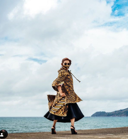 (Laiknya seorang model, Susi pun tampak luwes saat berpose mengenakan beberapa busana batik The Heritage saat pemotretan yang berlangsung di sebuah pantai. Foto: Dok Instagram/@susipudjiastuti115)