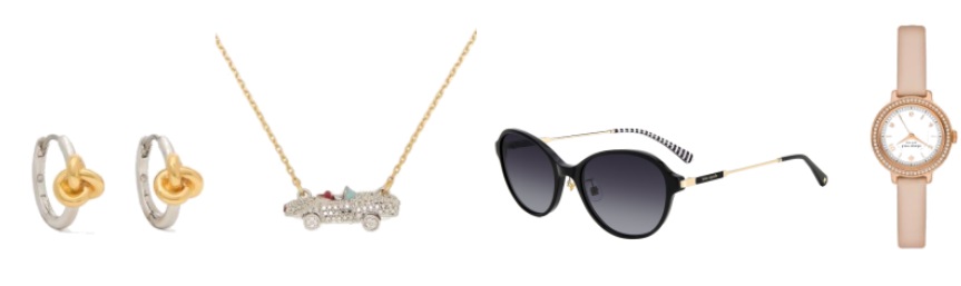 Double Knot Huggies,New York Minute Mini Pendant, Vonnie Sunglasses, dan Morningside Pink Leather Strap dari Kate Spade New York