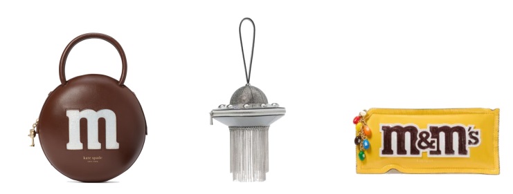M&M's x Kate Spade New York Embellished 3D Crossbody, Spaced Out Embellished Metallic 3d Ufo Top Handle Bag, dan M&M'S x Kate Spade New York Embellished Patent 3D Crossbody dari Kate Spade New York. Dok. Ist