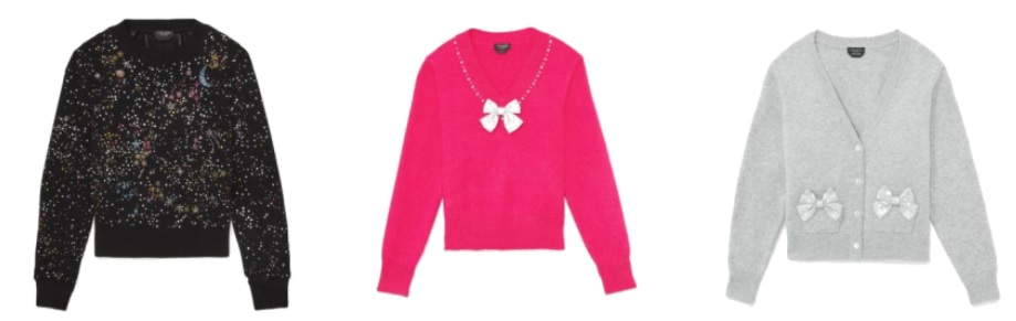 Embellished Constellations Sweater, Embellished V-Neck Sweater, dan Embellished Bow Wool Cardigan dari Kate Spade New York. Dok. Ist