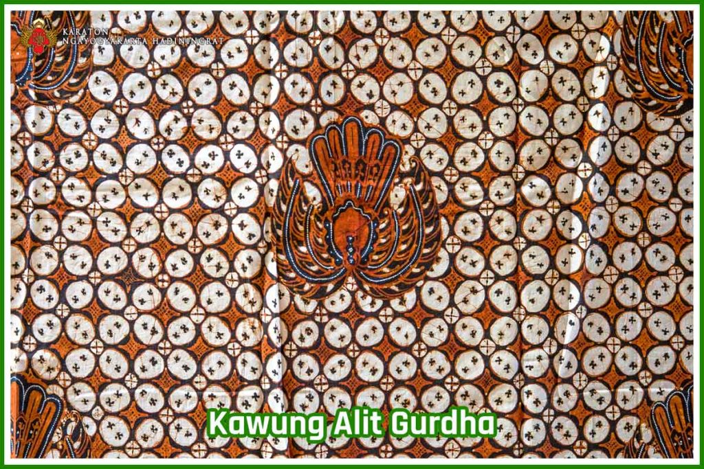 Motif Kawung boleh dipakai oleh para Sentana Dalem saja. Motif ini merupakan pola geometris dengan empat bentuk elips yang mengelilingi satu pusat.