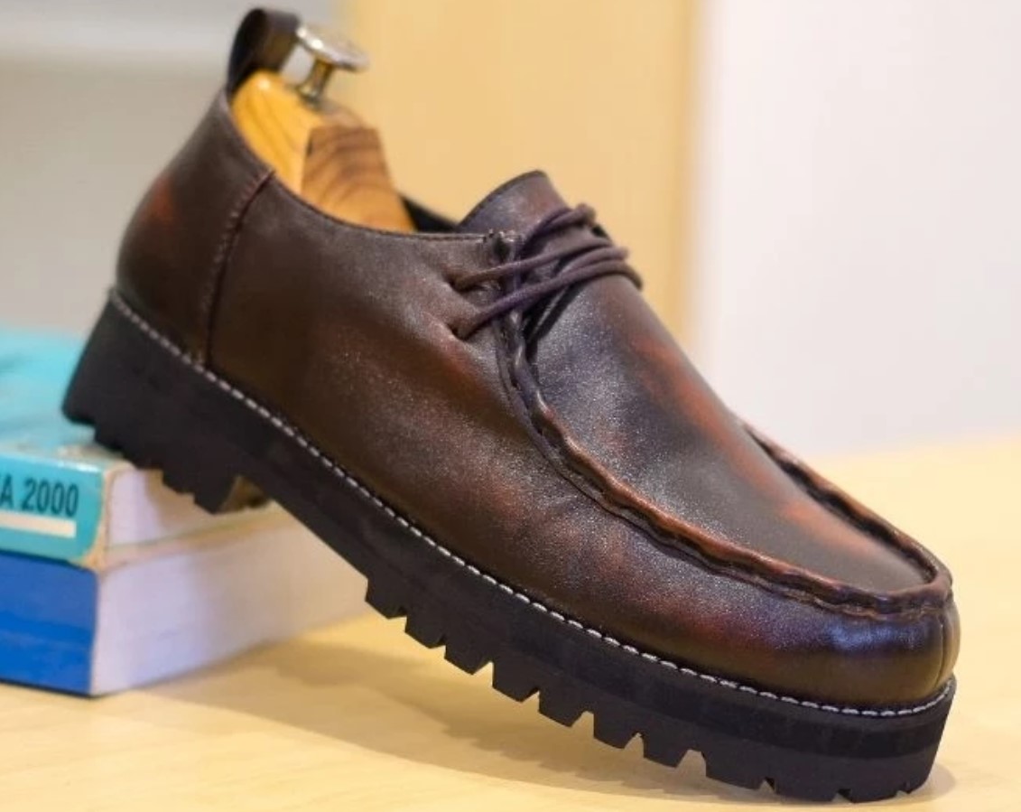 Sepatu ini terbuat dari 100 persen kulit asli jenis cowhide crazy horse leather. Siluetnya tampak vintage berkat adanya guratan alami khas kulit asli hewan.