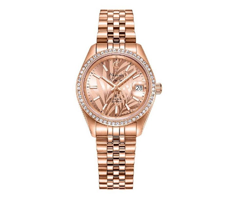 Memiliki desain mewah dengan finishing elegan. Jam tangan ini memakai material stainless steel pada case dan strap untuk daya tahan optimal. Dibekali detail perhiasan di sekeliling kepala jam guna tonjolkan kesan mewah. Juga, cocok digunakan untuk acara formal, resmi, maupun outfit bergaya profesional. Harga Rp1.550 ribuan.